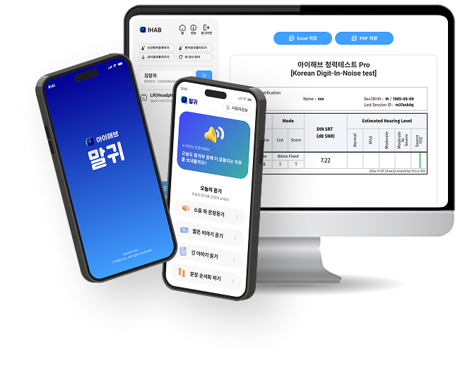 신의료 기술을 접목하여 쉽고 정확한 청각 검사와 훈련 도구를 보급합니다.